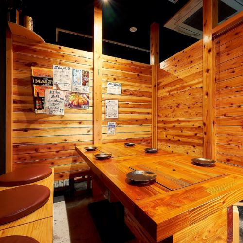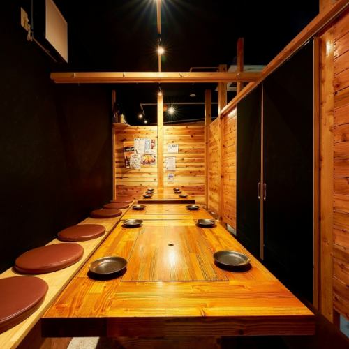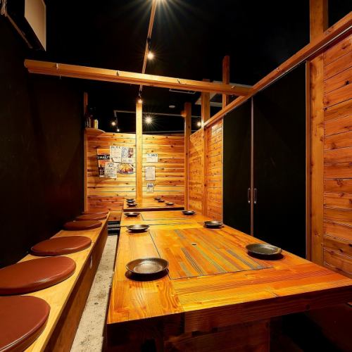 ●個室席●4~14名様●木の温もりを感じられる♪ゆったり過ごせて各種ご宴会にも最適!2組様限定なのでお早めのご予約をお待ちしております。駅近なのに隠れ家感たっぷりの大人空間で旨いお酒と九州料理をご堪能ください♪
